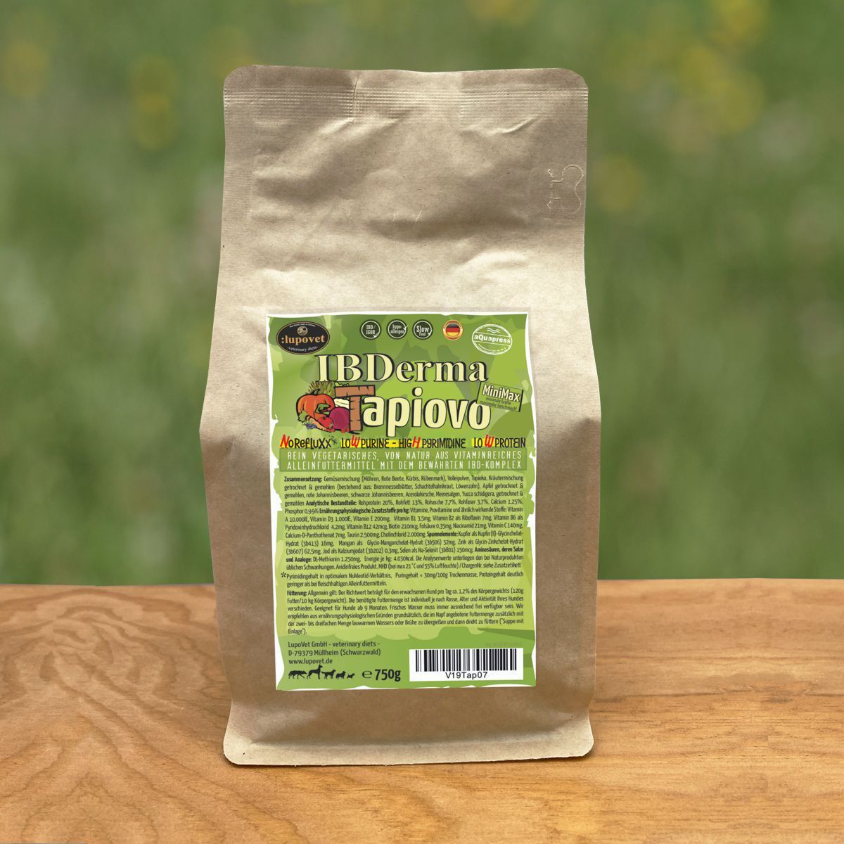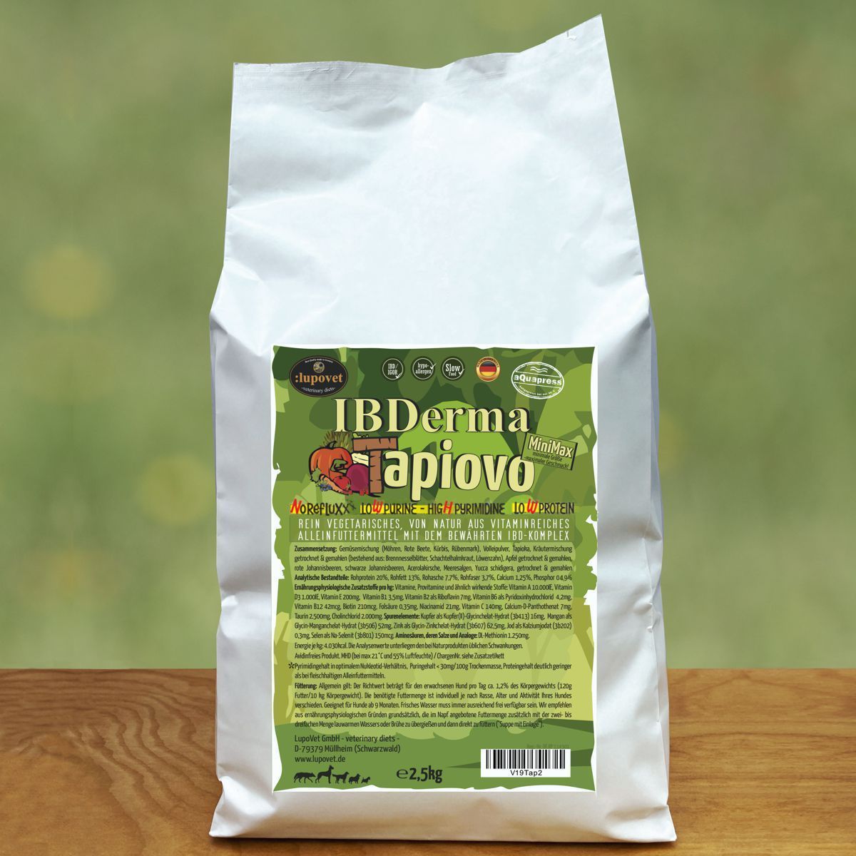 Unser rein vegetarisches, von Natur aus vitaminreiches LupoVet IBDerma Tapiovo mit dem bewährten, rein pflanzlichen IBD- und IGOR- Komplex ist ein fleischfreies, ausgewogenes und sehr schmackhaftes Alleinfuttermittel für Hunde.